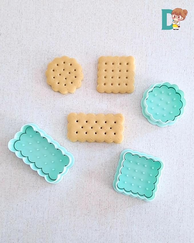 Kit completo com cortadores e carimbos para biscoitos e salgadinhos no formato scalloped. Perfeito para confeitaria artesanal e decoração de doces.