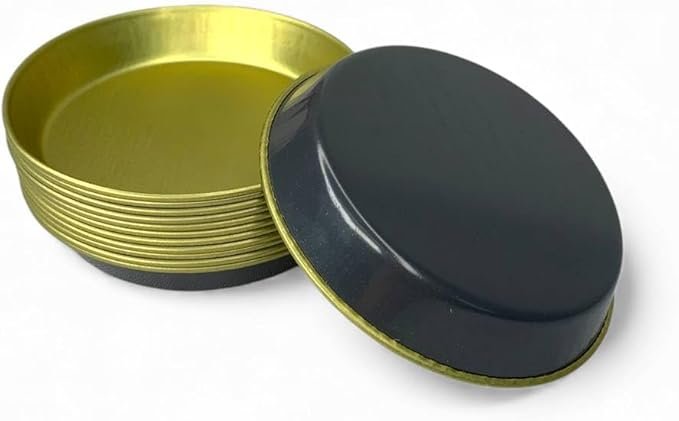 Kit com 12 formas lisas envernizadas, ideais para tortas, maçã do amor e mini pizzas. Antiaderente, fácil de limpar e resistente ao calor.
